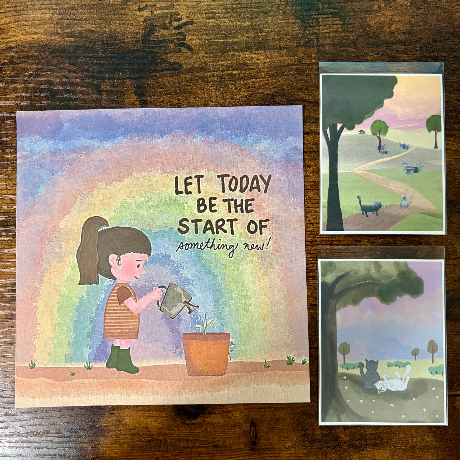 You might wanna share to a friend an art print postcard of a calm moment where cats meet nature...